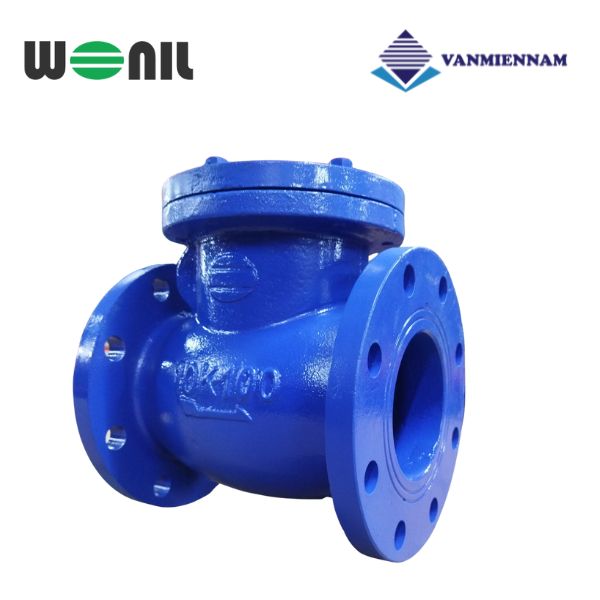 Van 1 chiều lá lật Wonil DN100 có thân được chế tạo từ gang cầu nên có độ bền cơ học cao, khả năng chịu áp lực tốt và chống ăn mòn trong môi trường làm việc có tính chất khắc nghiệt. Thiết bị hoạt động dựa trên cơ chế lá lật tự động. Khi có dòng chảy đi qua, áp lực của dòng chảy sẽ đẩy đĩa van mở ra, cho phép lưu chất đi qua; ngược lại, khi dòng chảy ngừng hoặc đổi chiều, trọng lực và áp suất ngược sẽ khiến lá van tự động đóng lại, ngăn chặn hoàn toàn hiện tượng dòng chảy ngược. Van được kết nối với đường ống thông qua mặt bích tiêu chuẩn JIS10K, giúp việc lắp đặt trở nên chắc chắn, an toàn và dễ bảo trì.
