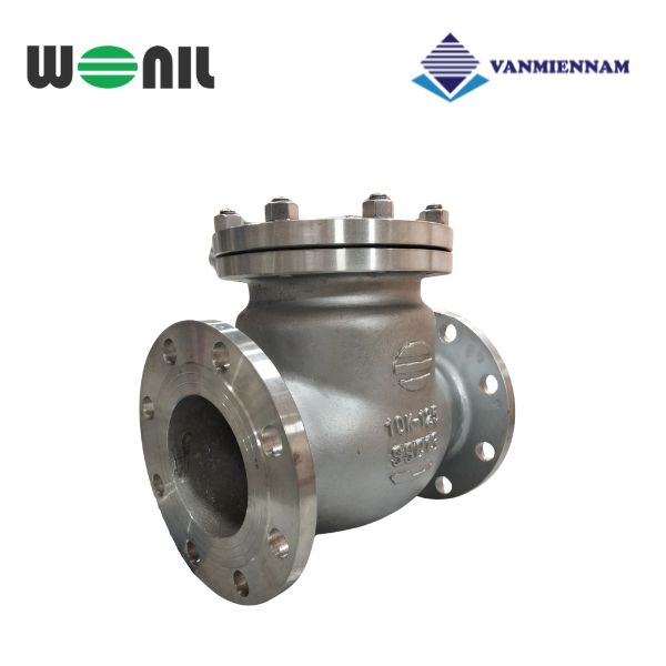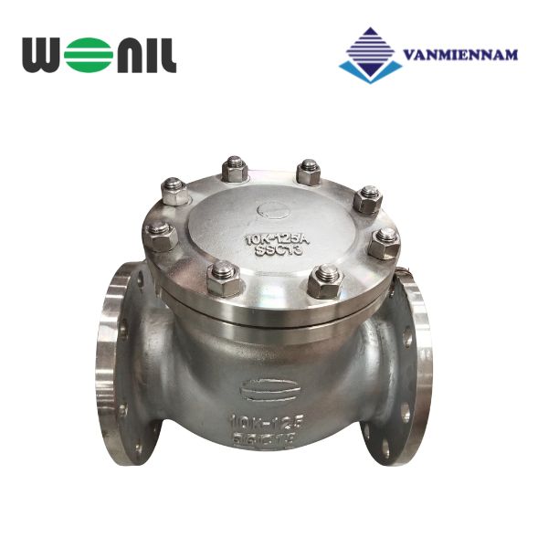 Van 1 chiều lá lật inox mặt bích Wonil DN125 có chức năng ngăn dòng chảy ngược trong hệ thống đường ống, đảm bảo lưu chất chỉ di chuyển theo một chiều duy nhất. Sản phẩm được sản xuất bởi thương hiệu Wonil Hàn Quốc, nổi bật với độ bền cao, khả năng chống ăn mòn vượt trội và vận hành ổn định trong môi trường làm việc khắc nghiệt. Van sử dụng kết nối mặt bích tiêu chuẩn giúp dễ dàng lắp đặt, thay thế và bảo trì trong các hệ thống công nghiệp hiện đại.